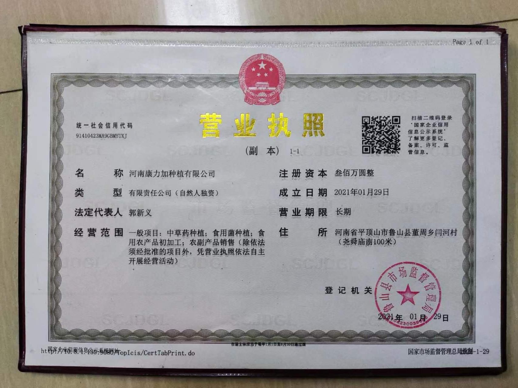 河南省康力加種植有限公司創建于2016年,位于河南省平頂山市魯山縣城以西伏牛山之側,八百里伏牛山生長了枝葉繁茂的椴木林,山清水秀,光照充足,溫度適宜,更適合靈芝的生長和集約化培植??盗屿`芝種植基地引進仿野生優良菌種,培育出了優質的靈芝孢子粉;其靈芝孢子粉各項生化指標均達到或超過國家標準,基地規模不斷擴大,保證了靈芝孢子粉的國內外客戶需求。產品不但銷到遼寧、吉林、黑龍江、新疆、安徽等,還遠銷香港、新加坡等海外市場。